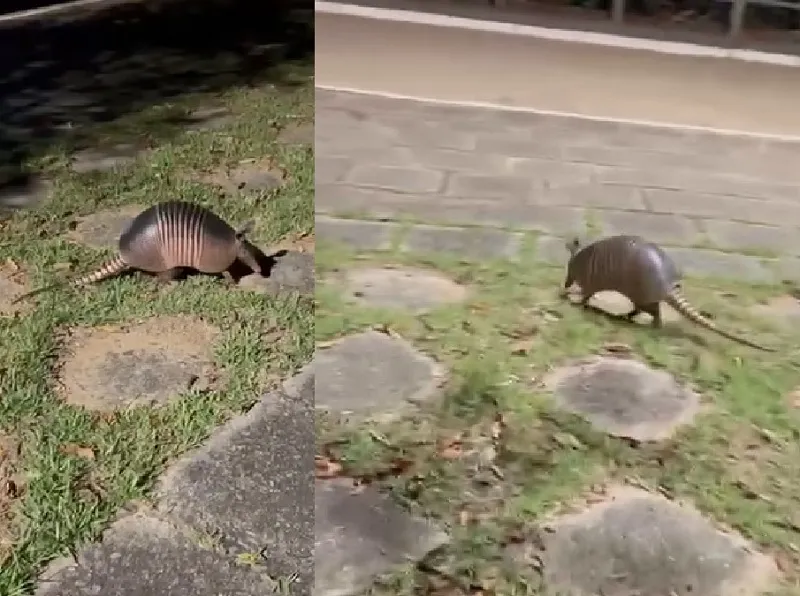 Tatus passeiam pela Avenida do Sol, no Pontal do Ipiranga
